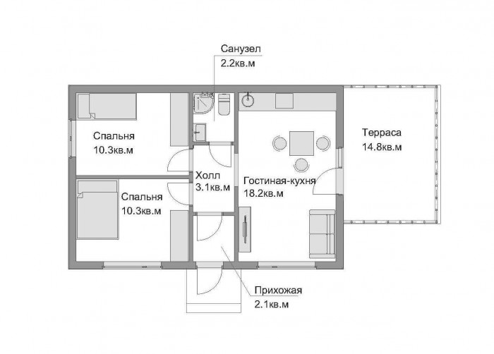 • Общая площадь 61 м2